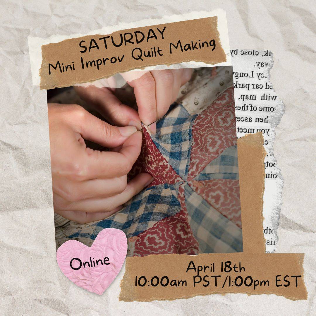 Have you ever wished you could sew a quilt, but didn’t know where to begin? In this live, online mini improv quilting workshop, you’ll create your own mini quilt while learning the foundations of quilt construction, fabric and color selection, and intuitive design. Whether you’re brand new or ready to loosen up your practice, you’ll gain confidence, let go of rigid patterns, and leave this 3-hour class (Saturday, April 18th at 10am PST / 1pm EST) with new skills and a quilt in progress All you need is a sewing machine to get started.
